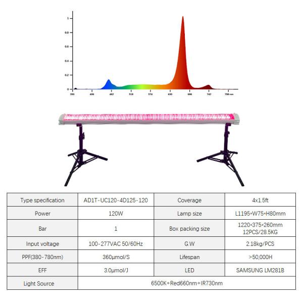 Spectrum : Full spectrum, 6500K+660nm+730nm